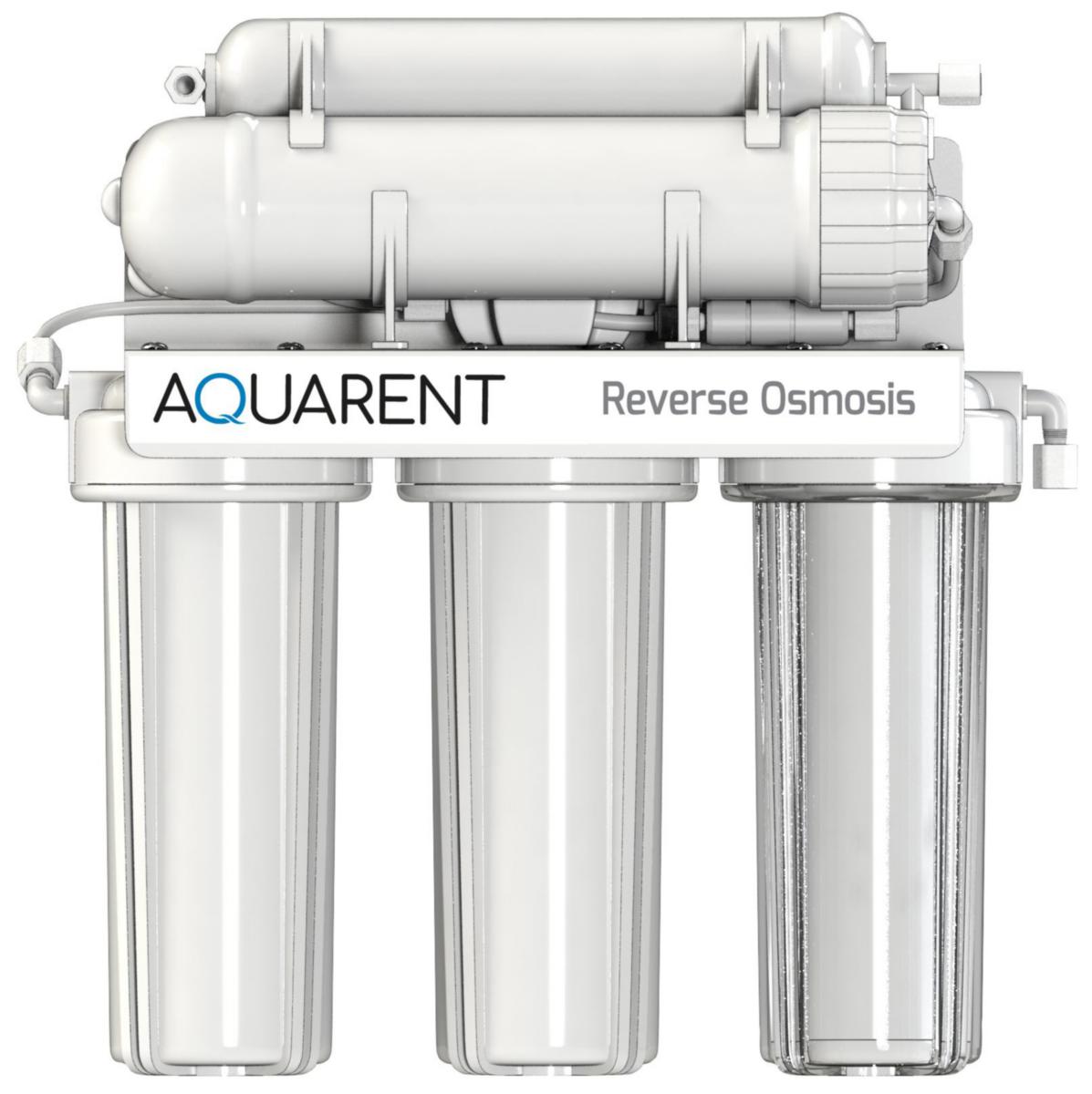 Aquarent Dricksvattenfilter RO-50 är ett system för rening av tappvatten med omvänd osmos, avsett för montering under diskbänk och levereras komplett med lagringstank och separat tappkran, tillverkat i slitstark plast.