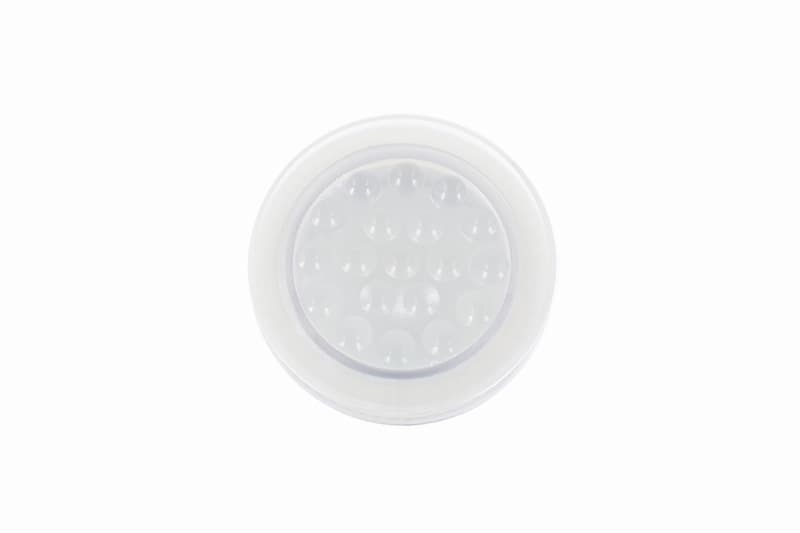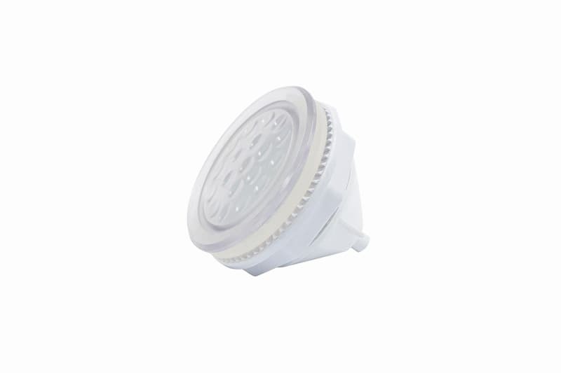 Vit kopphållare i PVC med transparent lock, avsedd för montering på spabadets sargkant. Utrustad med anslutning för LED-diod för belyst insida. Levereras komplett med packning och mutter. Passar hål med en diameter på 66 mm.