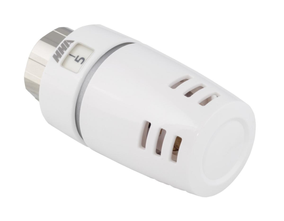 Rakt termostathuvud i vit färg (RAL 9016) för användning i både värme- och kylsystem. Utrustat med vaxfyllt inställningselement för noggrann temperaturreglering och tillverkat för anslutning till ventil med M28x1,5. Termostaten har frysskydd, 0-läge (av), blockering och begränsning av inställning samt mekaniskt lås i nollposition. Lämplig för radiatorer och levereras i olika förpackningsstorlekar. Finns i flera varianter med olika justeringsområden.