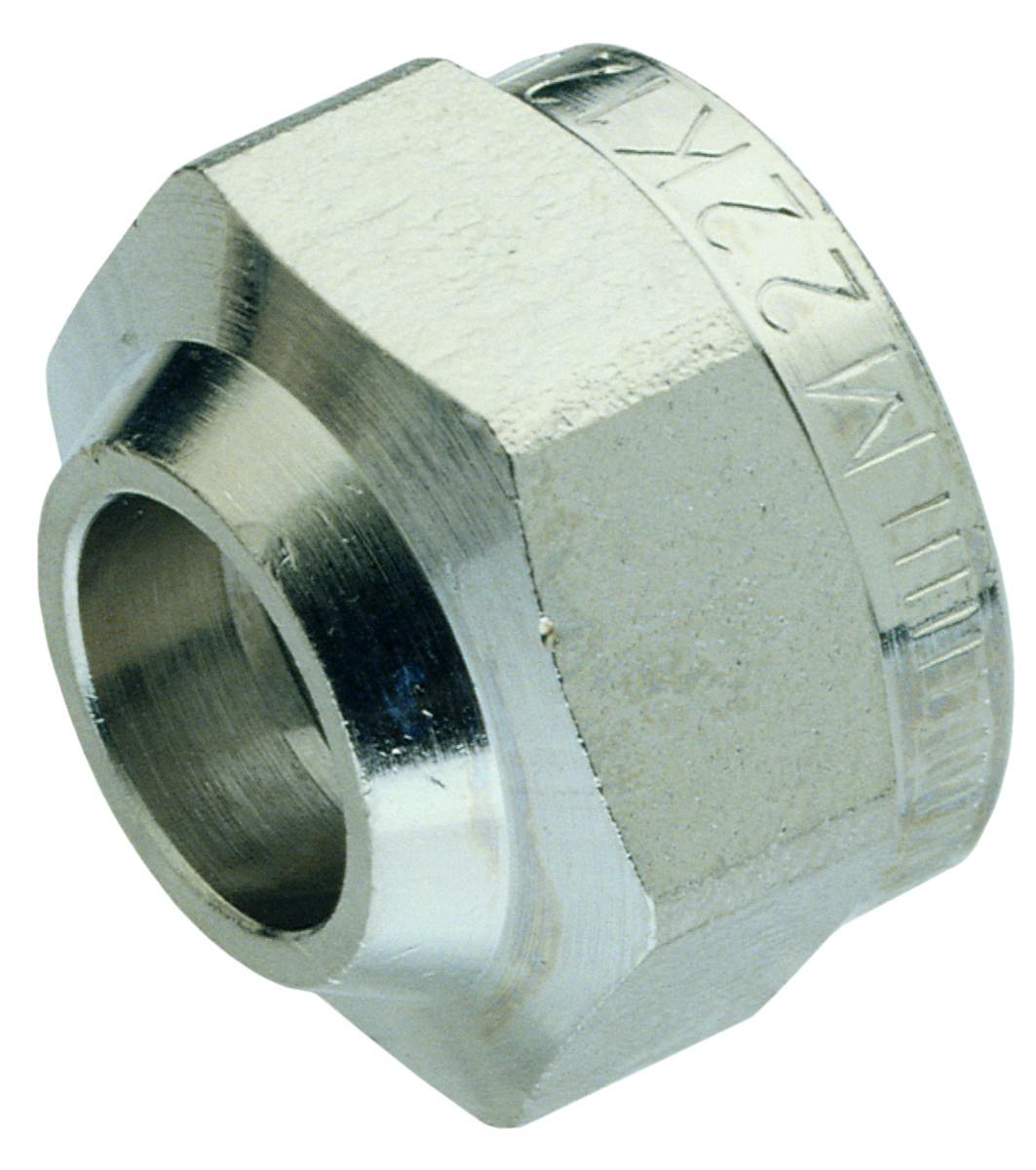 MMA Tryckmutter till koppel K12/K15 för tappvatten-, värme- och luftsystem. Tillverkad i mässing med invändig metrisk gänga (M22) och sexkantskruvsystem. Passar rör med utvändig diameter 15 mm och kompletteras med kona. Tryckklass PN16, maximal arbetstemperatur +100 °C.